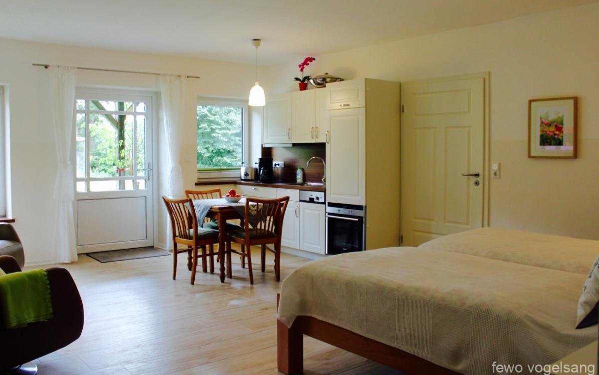 Das Apartment mit überdachter Terrasse und Blick ins Grüne, befindet sich auf einem Resthof in idyllischer Lage. Ein herrlicher Blick auf das Vogelschutzgebiet der Flusslandschaft Eider-Treene-Sorge lädt zum Ausruhen ein. Die Ferienwohnung wurde 2014 in einem Teil der ehemaligen Stallungen vom Hof gebaut. Sie wurden mit natürlichen Baustoffen errichtet, wie z.B. Holzfaserdämmung, Kreidezeit Kalkfarben und Putze. Die Wohnung mit dem integriertem Schlafbereich ist ca. 31.5 qm groß, plus begehbaren Kleiderschrank von ca. 2,5 qm. Das Bad ist ca. 8 qm groß und mit einer Fuß- und Wandheizung ausgestattet. Zudem barrierefrei. Gesamte Wohnungsfläche 42 qm. Eine Waschmaschine ist vorhanden